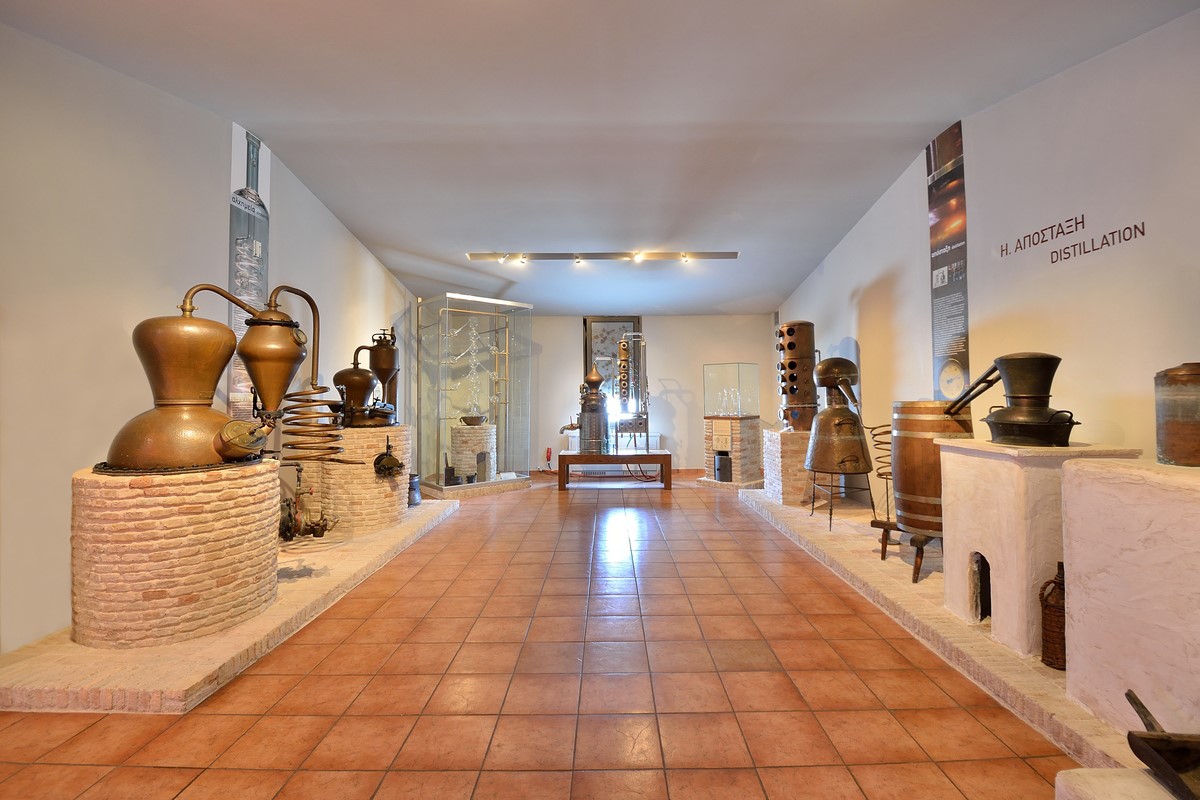 Απόσταξη: Στην ειδικά διαμορφωμένη αίθουσα με την ιστορία και τους εν λειτουργία σε μικρογραφία αποστακτήρες ο επισκέπτης γνωρίζει λεπτομέρειες και βιωματικά μαθαίνει για την απόσταξη σταφυλής. Εδώ θα θαυμάσετε αναπαραστάσεις αποστακτήρων από την εποχή των Αλχημιστών και την αρχαία Ελλάδα.