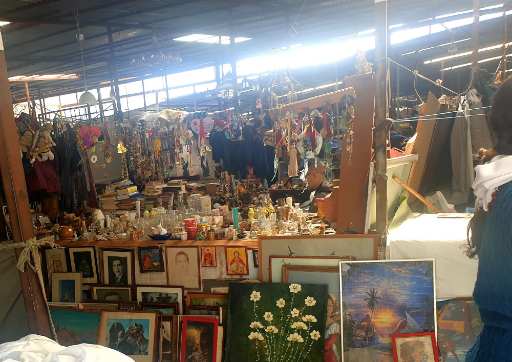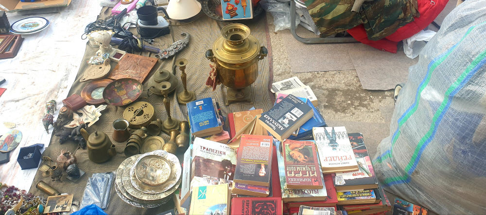 Εδώ η πόλη εξομολογείται. Βγάζει τα κρυμμένα μυστικά της από τα μπαούλα, κατεβάζει τα γυαλικά της από τα ράφια, τα εσώψυχλα της από τα κλειστά διαμερίσματα και τα απλώνει στα πόδια σας. Σας λέει την ιστορία της μέσα από τα αντικείμενά της. Το καθένα σε αφήνει να φανταστείς τις ιστορίες που κρύβει. Παλιές φωτογραφίες, επιστολές με ρομαντικά ρομάντζα που έζησαν κάποτε κι έσβησαν, αλλά συνεχίζουν να διεκδικούν την αιωνιότητα μέσα από κάποιο περίεργο συλλέκτη αγοραστή.